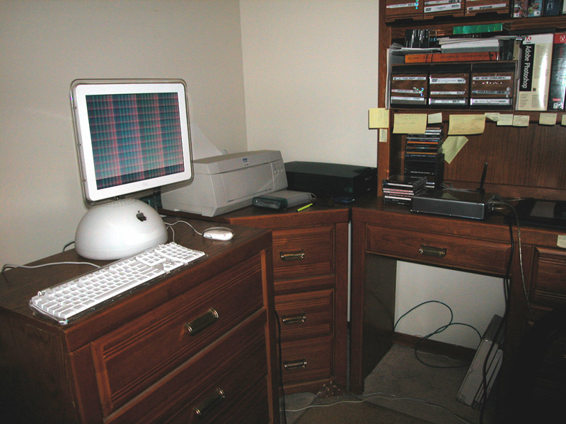 iMac doing the video test and you can see the FireWire Hard Drive on the desk. Life should have several of these.