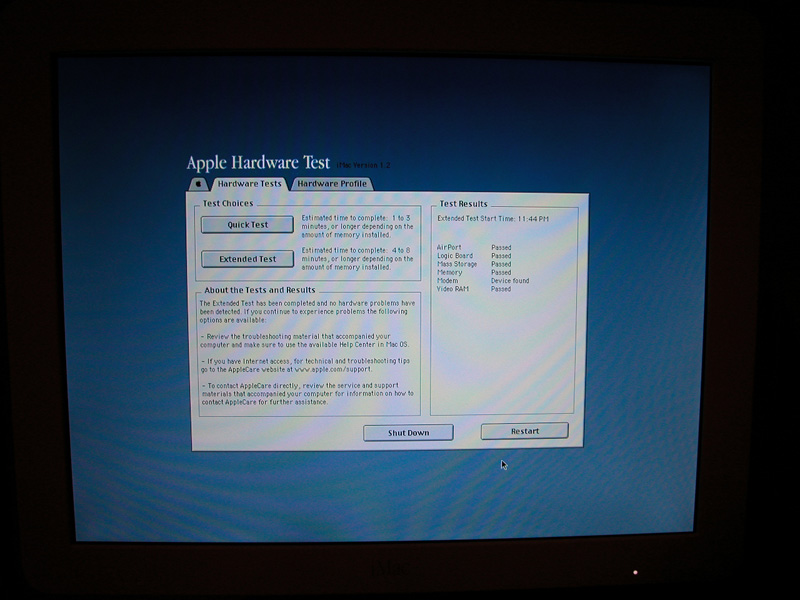 Here's the Hardware Test interface after an Extended test.